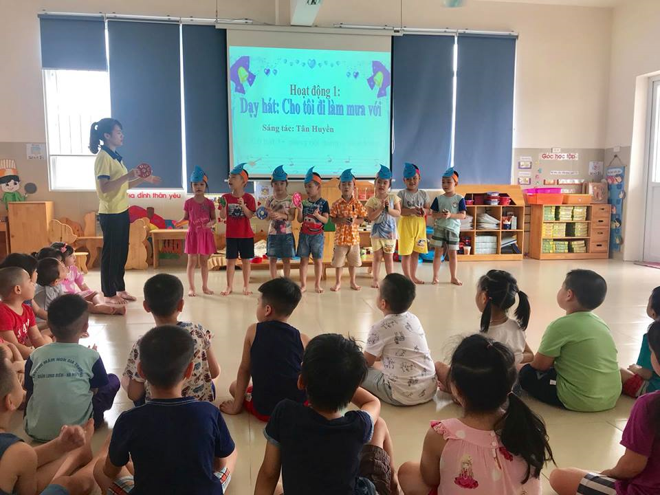 Cô cho trẻ nghe hát : Mưa rơi.
