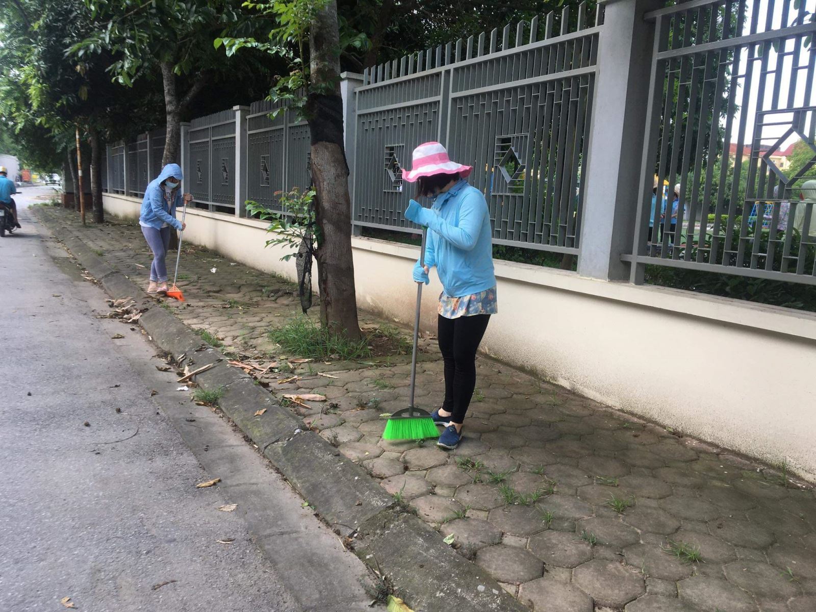 Cá !important;c cô quét dọn khu vực hai bên phái cổng trường