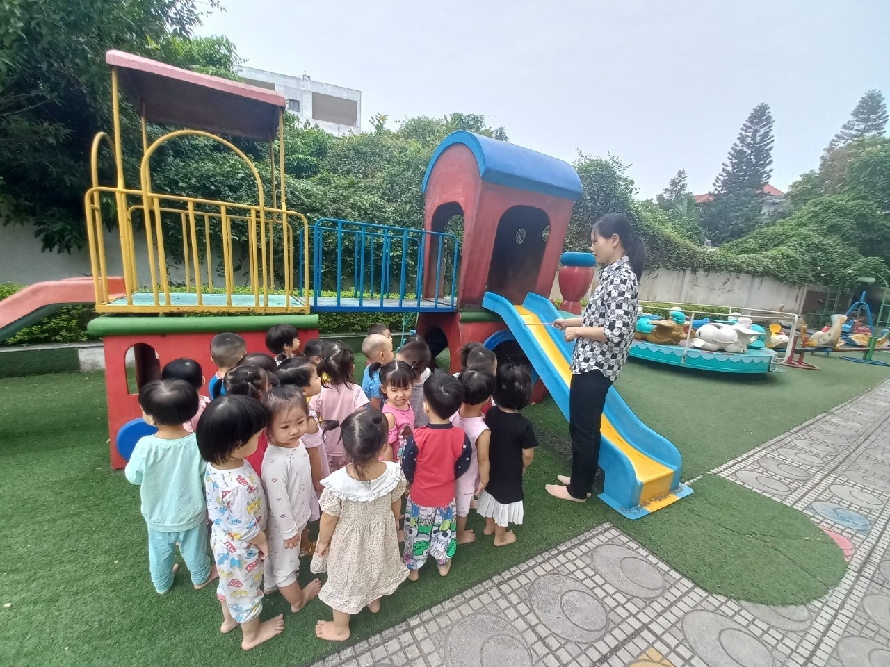 Giáo dục trẻ: Biết chơi đúng cách với cầu trượt - Chơi đúng khu vực qui định, chơi đảm bảo an toàn