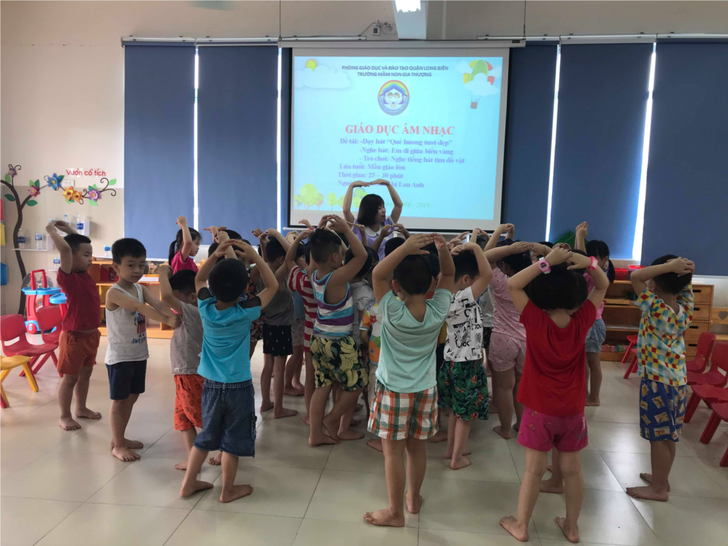 Trẻ em ở tuổi mầm non rất nhạy cảm với âm nhạc. Trẻ thích nghe nhạc và hứng thú tham gia vào các hoạt động âm nhạc. Mục đích của giáo dục âm nhạc là giáo dục tình cảm đạo đức, thẩm mỹ cho trẻ. Giáo dục âm nhạc hình thành cho trẻ lòng yêu thiên nhiên, Tổ quốc, tình yêu thương con người; hình thành và phát triển ở trẻ những thói quen tốt trong sinh hoạt tập thể như: Tính tổ chức kỷ luật, tự chủ, mạnh dạn trước mọi người. Giáo dục âm nhạc còn là phương tiện nâng cao khả năng trí tuệ, phát triển thể chất, giúp trẻ phát triển trí tưởng tượng, củng cố kiến thức trẻ qua học tập, vui chơi. Quá trình trẻ tiếp xúc và hoạt động âm nhạc như học hát, nghe hát, vận động theo nhạc, chơi trò chơi âm nhạc... sẽ hình thành ở trẻ những yếu tố của một nhân cách phát triển toàn diện, hài hòa, là sự phát triển về thẩm mỹ, đạo đức, trí tuệ và thể lực. Giáo dục âm nhạc cho trẻ mầm non là một nhiệm vụ vô cùng quan trọng. Chính vì thế trong các giờ học hằng ngày của các con không thể thiếu tiết âm nhạc.