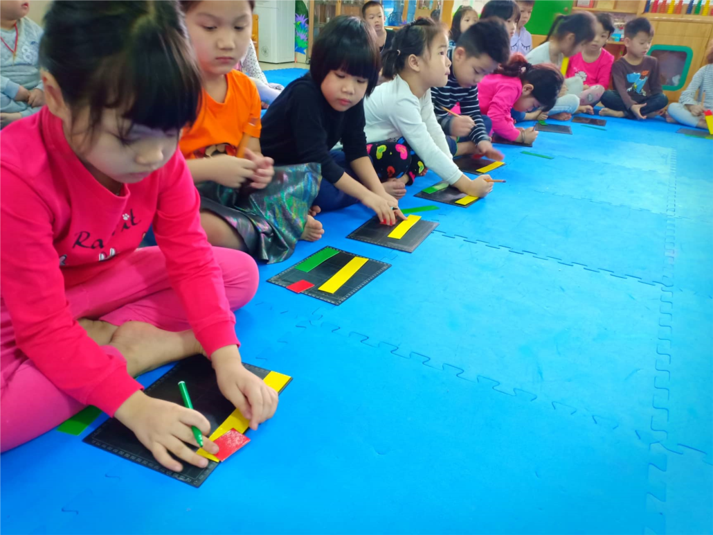 Học sinh mẫu giáo sẽ phải sắp xếp đồ vật theo đặc điểm của chúng (hình dạng, màu sắc và kích thước), hoặc xác định đặc điểm giúp đồ vật được phân chia theo nhóm. Các em cũng phải sắp xếp đồ vật bằng một số đặc điểm đo lường nào đó, chẳng hạn từ lớn hơn đến bé hơn.