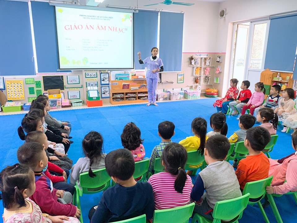 Một trong những giờ học âm nhạc của các bạn nhỏ lớp MGL A3