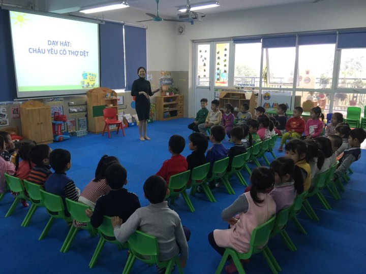Cô giới thiệu tên tác giả, tên bài hát mà ngày hôm nay các bạn ý sẽ được học và mời trẻ nhẹ nhàng đi về chỗ ngồi