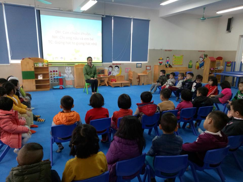 Cô hát mẫu cho các con, rồi cho cả lớp hát và lần lượt tổ chức cho từng tổ, nhóm, các nhân lên thể hiện: