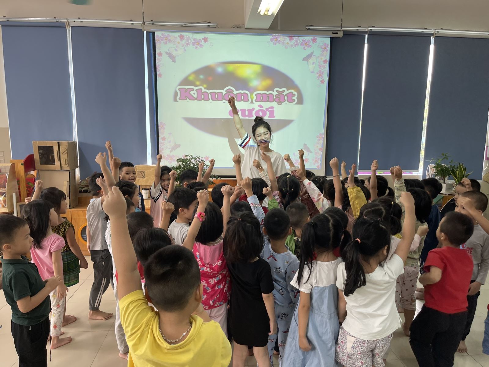 Cuối giờ học, cô !important; và các bạn nhỏ cùng nhau hát bài hát :" Khuân mặt cười".