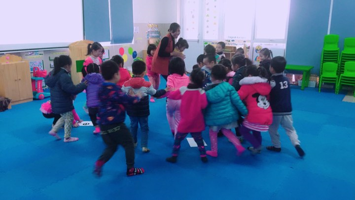 Vừa đi vòng tròn vừa hát, khi có hiệu lệnh của cô là" tìm nhà tìm nhà" thì trẻ phải chạy thật nhanh về chỗ có chứa chữ cái giống với chữ cái mình đang cầm.