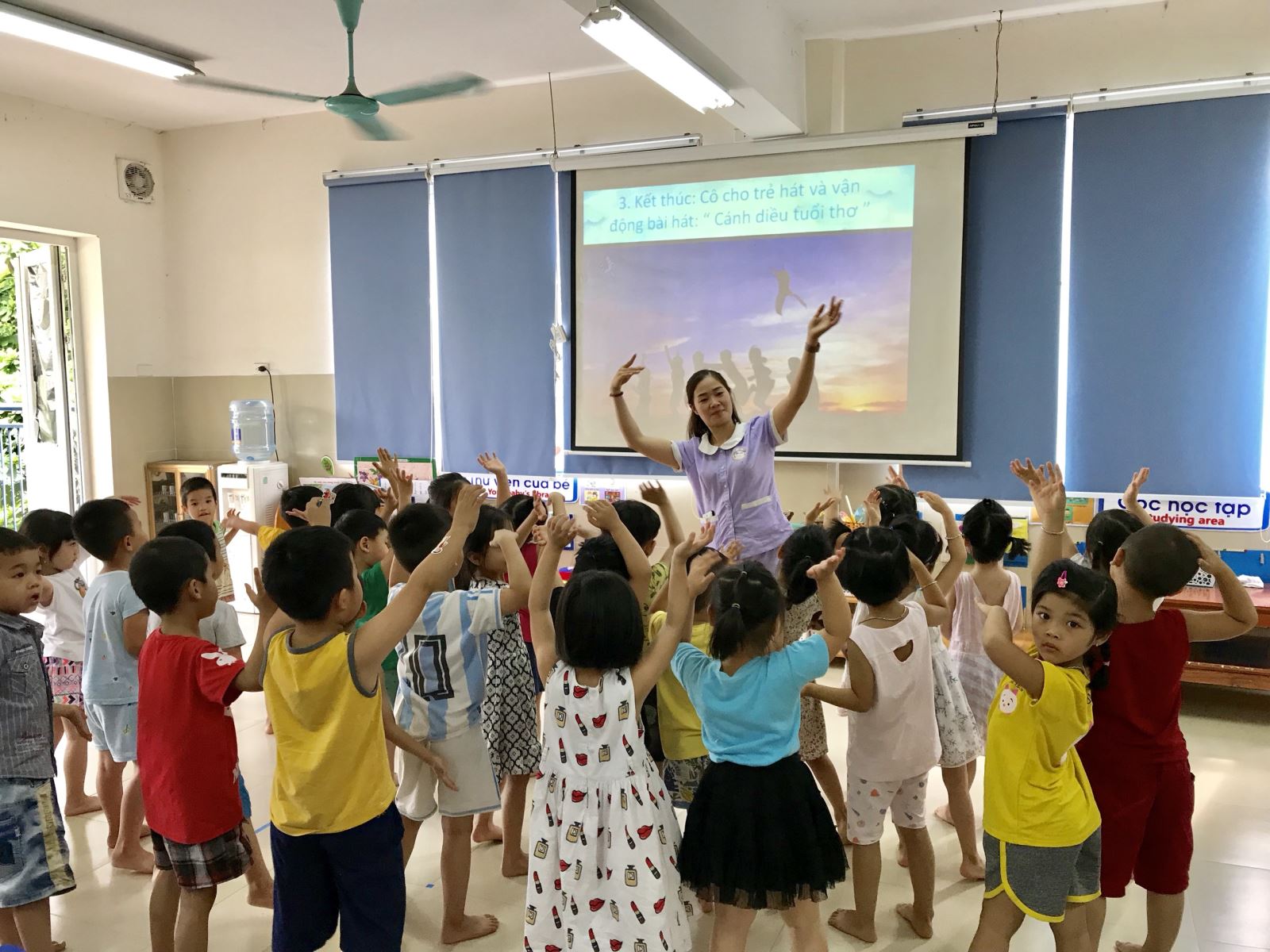 Cô và trẻ cùng vận động bài hát "Cánh diều tuổi thơ"
