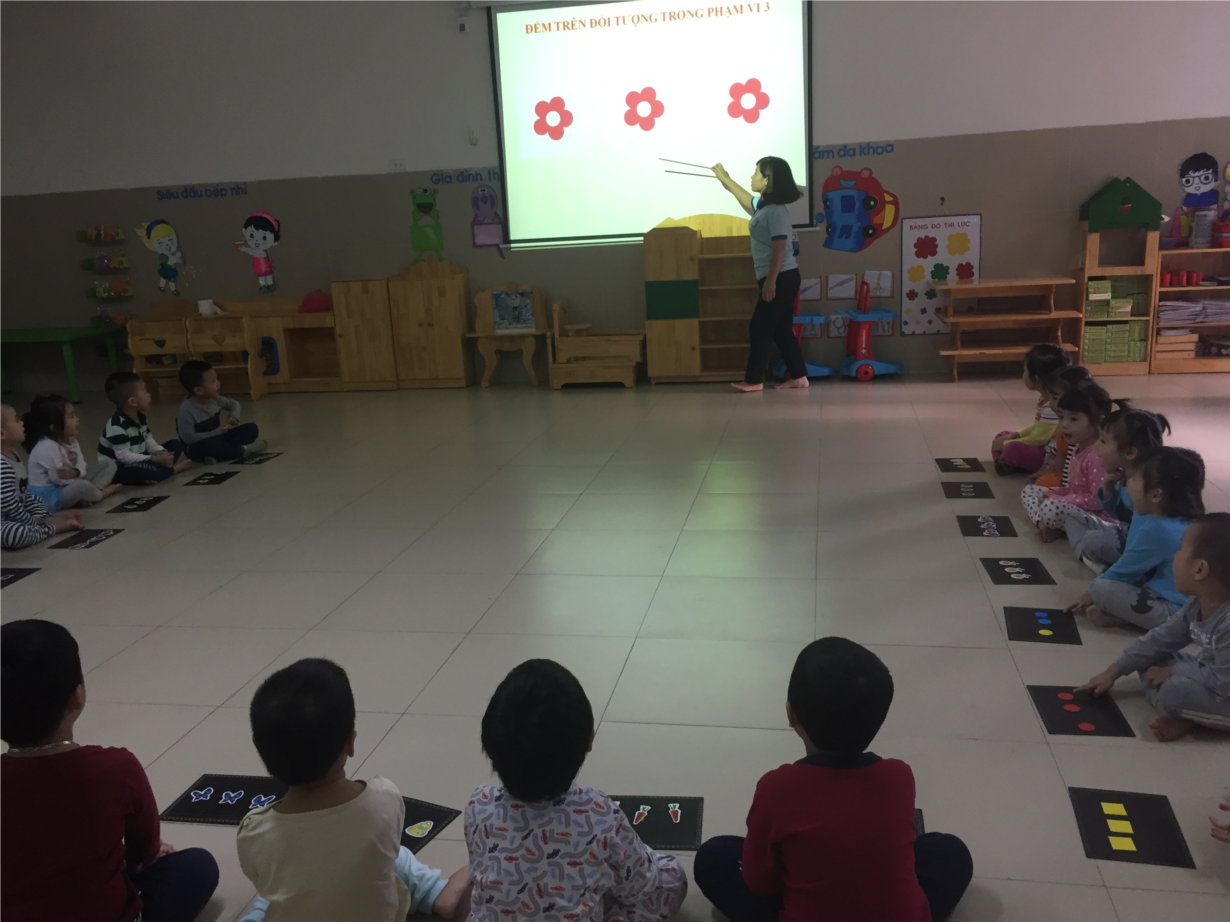 Với mục đích yêu cầu đặt ra là giúp trẻ có kỹ năng đếm liên tục đến 3, đếm không bỏ sót, không lặp trên các đối tượng. hôm nay cô và trò lớp MGB C1 cùng tham gia giờ học LQVT: Đếm đến 3