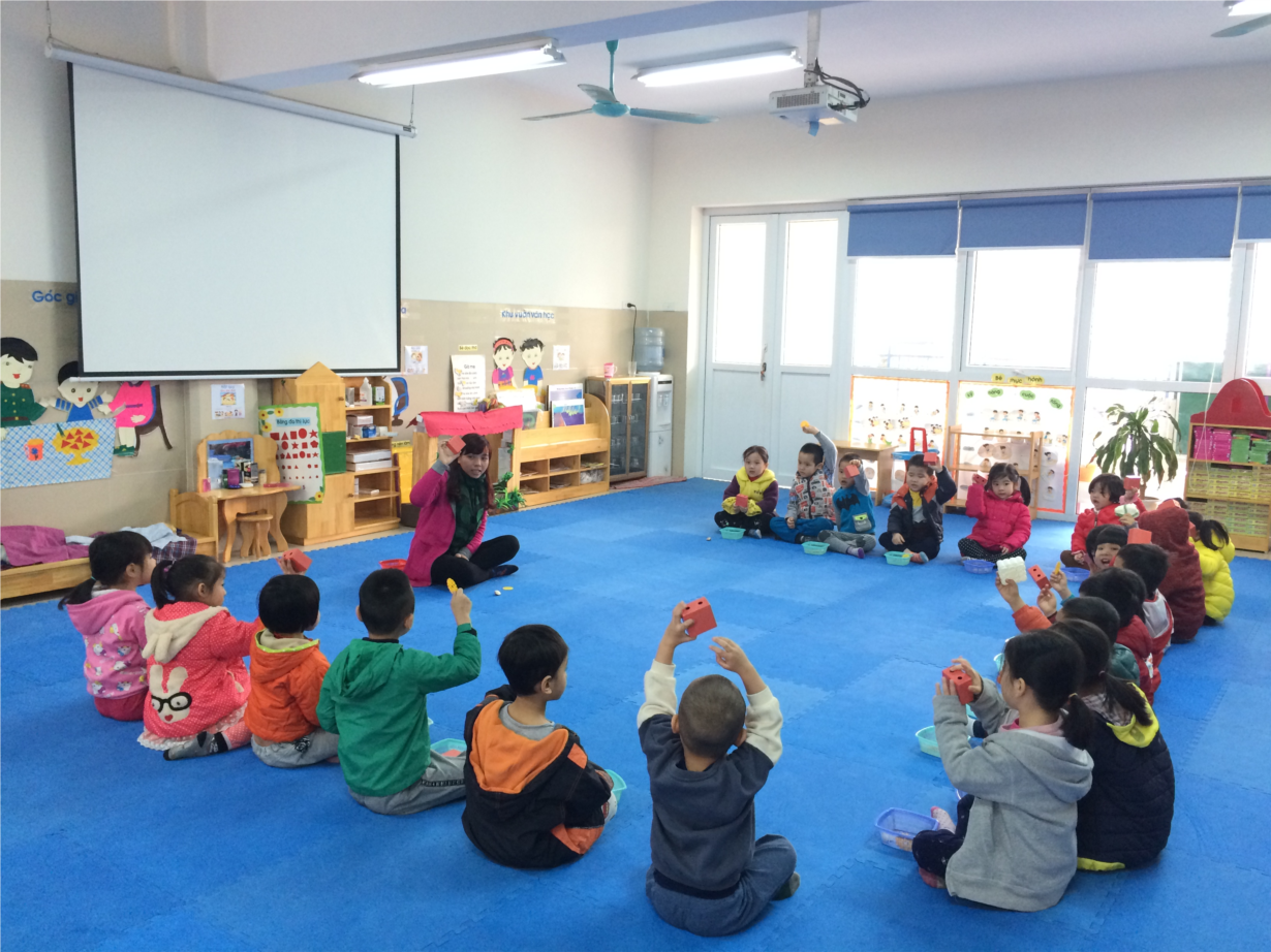 Hôm nay, cô và trò lớp mẫu giáo nhỡ B1 cùng tham gia hoạt động Làm quen với Toán: "So sánh sắp xếp thứ tự độ lớn của 3 đối tượng". Hoạt động này giúp bé nhận biết, phân biệt tốt 3 đối tượng có độ lớn khác nhau. Bé sắp xếp đối tượng theo chiều tăng hoặc giảm: To nhất, nhỏ hơn, nhỏ nhất. Bé biết ứng dụng vào cuộc sống, phân biệt đồ dùng có độ lớn khác nhau và công dụng của chúng: “Bát to nhất để lấy canh, bát nhỏ hơn để ăn cơm và bát nhỏ nhất đựng nước mắm”