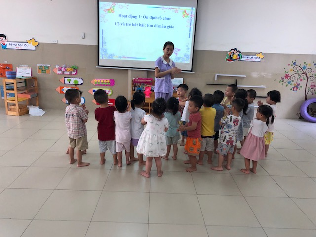 Cô và trẻ cùng hát bài: Em đi mẫu giáo.