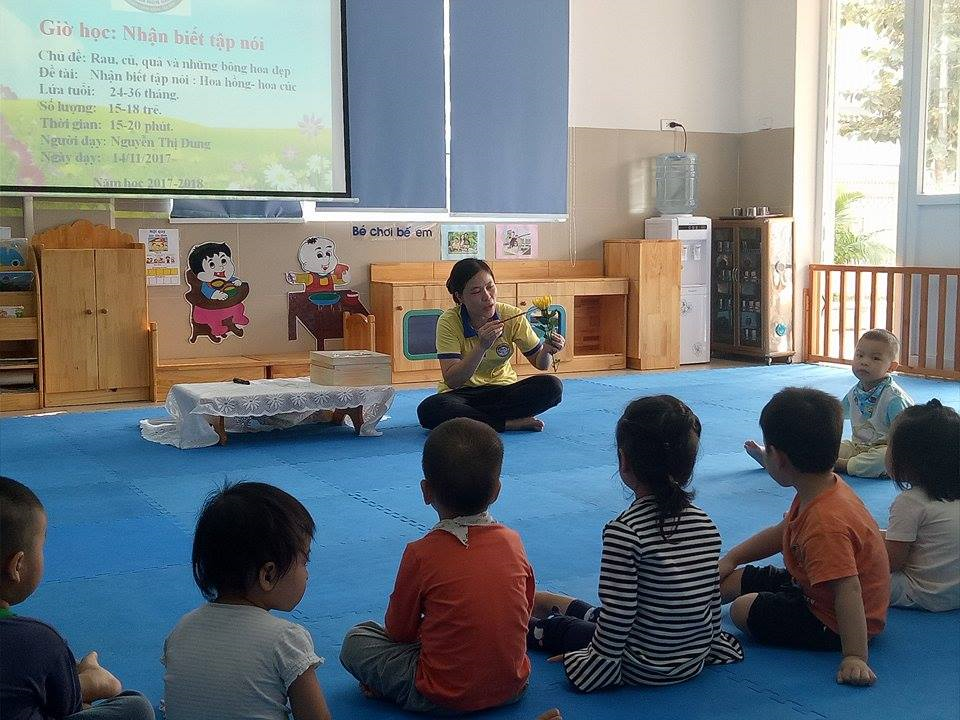 Hưởng ứng phong trào: “ Thi đua dạy tốt- dạy tốt”của cán bộ giáo viên trường mầmnon Gia Thượng và cuộc thi: “Giáo viên – nhân viên dạy giỏi cấp trường” Cô giáo Nguyễn Thị Dung đã xây dựng giờ học nhận biết tập nói: "Hoa hồng, hoa cúc". Để tạo hứng thú cho giờ học cô và trẻ cùng hát bài: “ Tay thơm, tay ngoan”