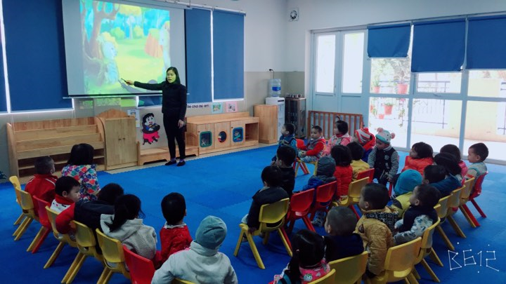 Trẻ hứng thú nghe cô kể chuyện.