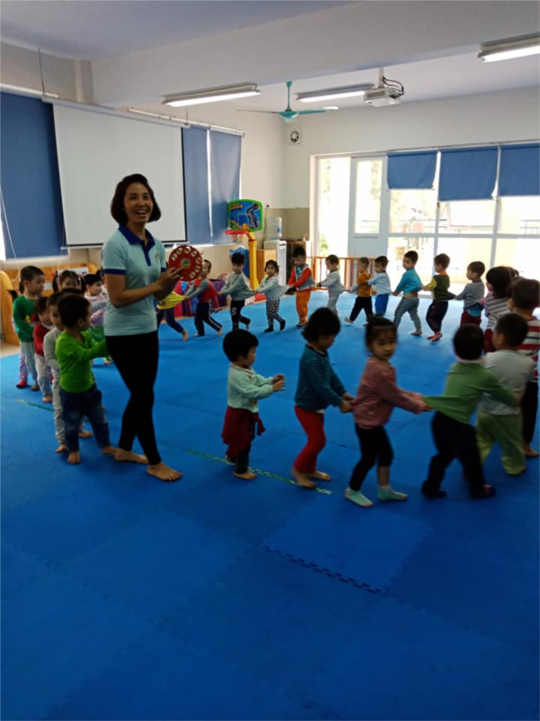 Hôm nay, các bạn lớp nhà trẻ D1 tham gia giờ học phát triển vận động: "Bò chui qua cổng" và trò chơi " Dung dăng dung dẻ". Các con đã biết đi thành vòng để cùng cô tập bài tập phát triển chung.