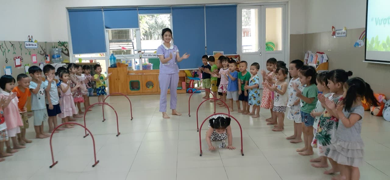 !important; Bé có thể chất tốt là bé luôn thấy vui vẻ, tinh thần sảng khoái khi tham gia các hoạt động hàng ngày. Để làm được điều này bố mẹ hãy cùng xem một số hình ảnh các cô giáo lớp MGB C2 trường mầm non Gia Thượng đã cùng với các bé thực hiện những bài tập phát triển thể chất:" Bò thấp chui qua cổng" như thế nào nhé!