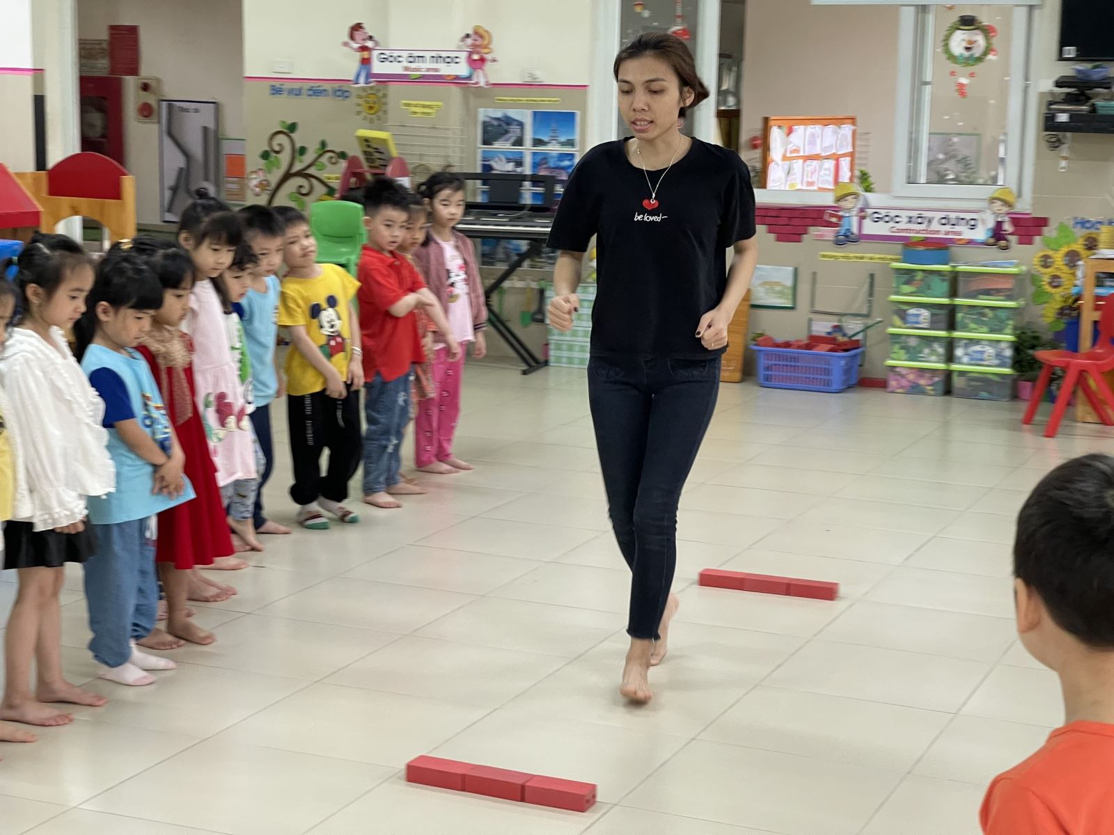 Để hiểu hơn về bài học chúng mình hãy cùng xem một số hình ảnh các cô giáo lớp MGL A3 đã cùng với các bé thực hiện những bài tập phát triển thể chất như thế nào nhé!