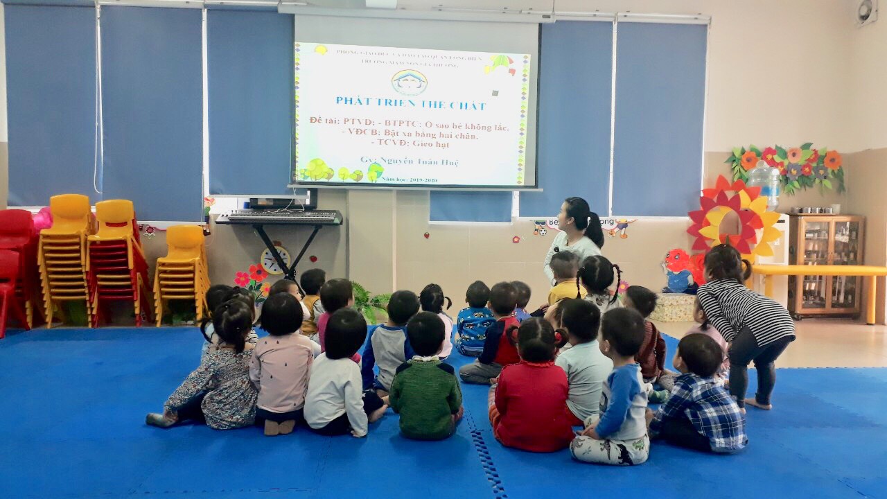 Chính vì vậy, hôm nay, cô và trẻ lớp NT D1 cùng nhau học giờ phát triển vận động " Bật xa bằng 2 chân".