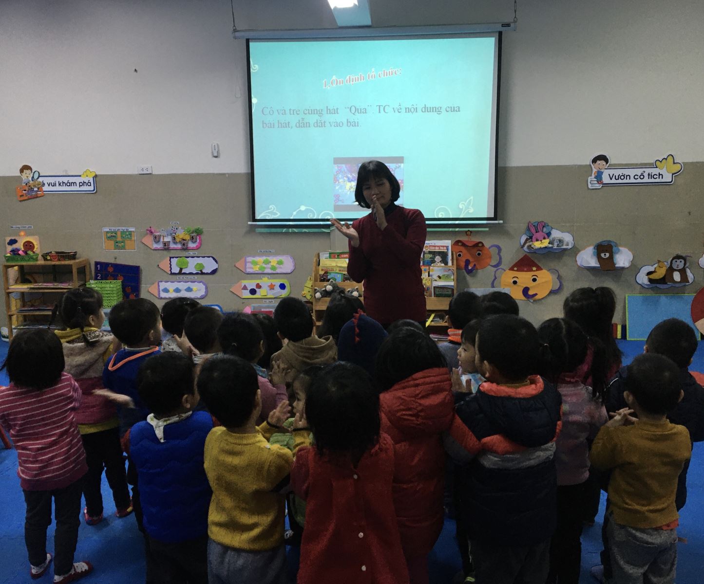 Cô và trẻ cùng hát vang bài hát "Qủa".