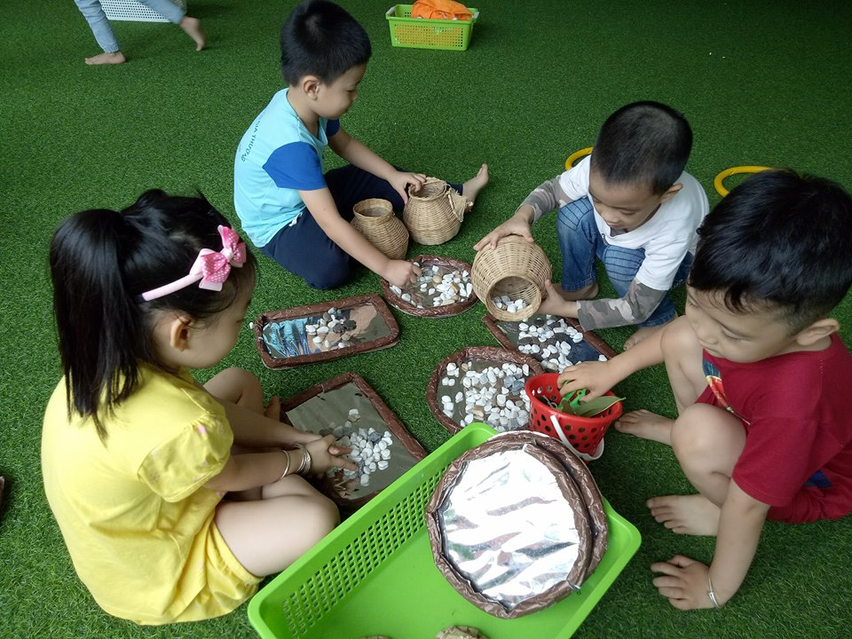 Sau khi chơi trò chơi xong, các bạn nhỏ được chơi tự do với các đồ dùng cố chuẩn bị.