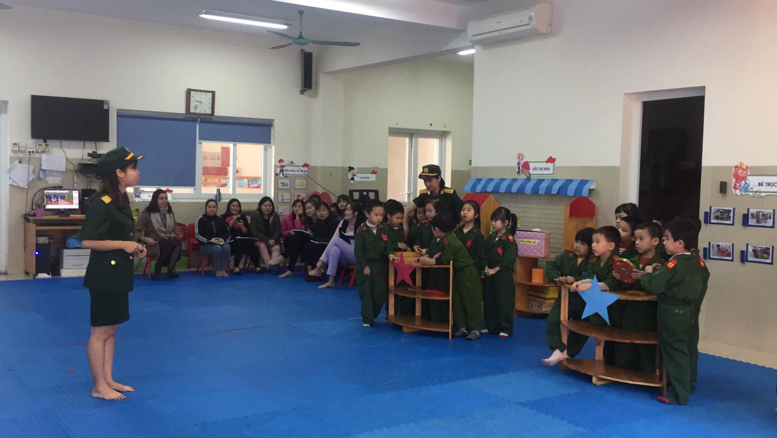 Các cô cũng hào hứng reo hò cùng các con.
