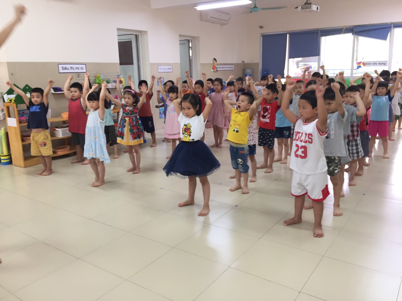 Trẻ đứng ngay ngắn  !important;về 4 hàng và tập BTPTC.