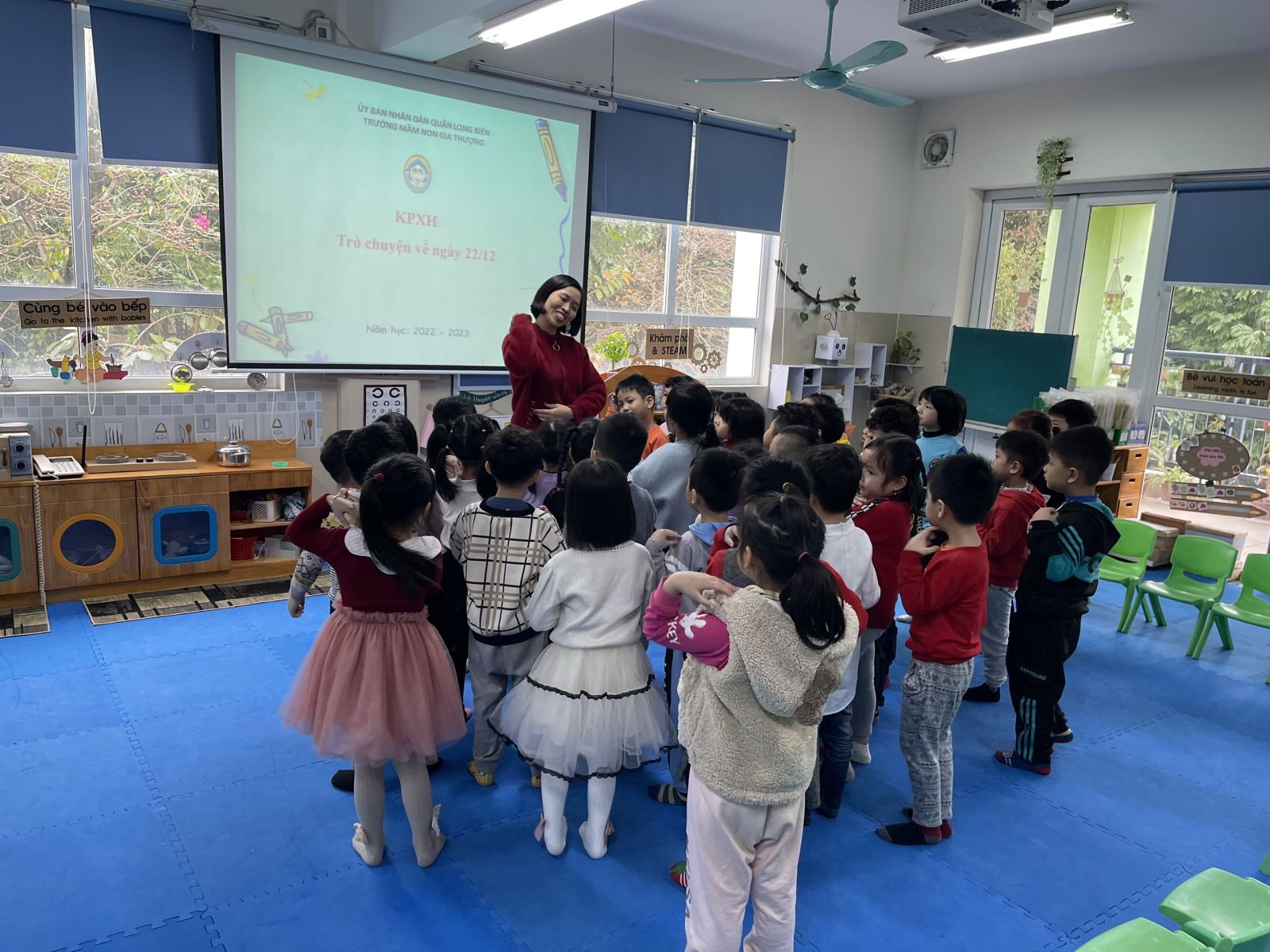 Dưới đây là một vài hình ảnh của các bé lớp MGL-A2 trong hoạt động khám phá "Trò chuyện về ngày 22/12":