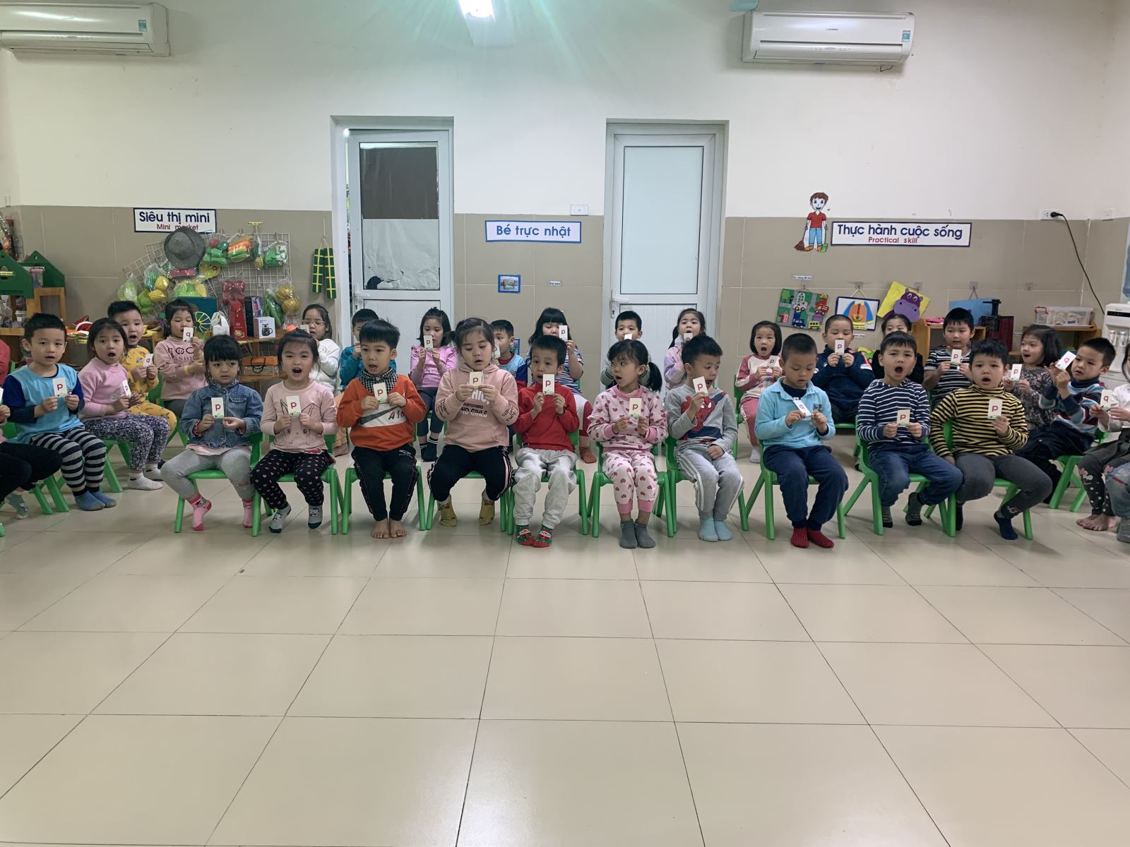 Cô Quyên giới thiệu các kiểu chữ p cho các bạn nhỏ