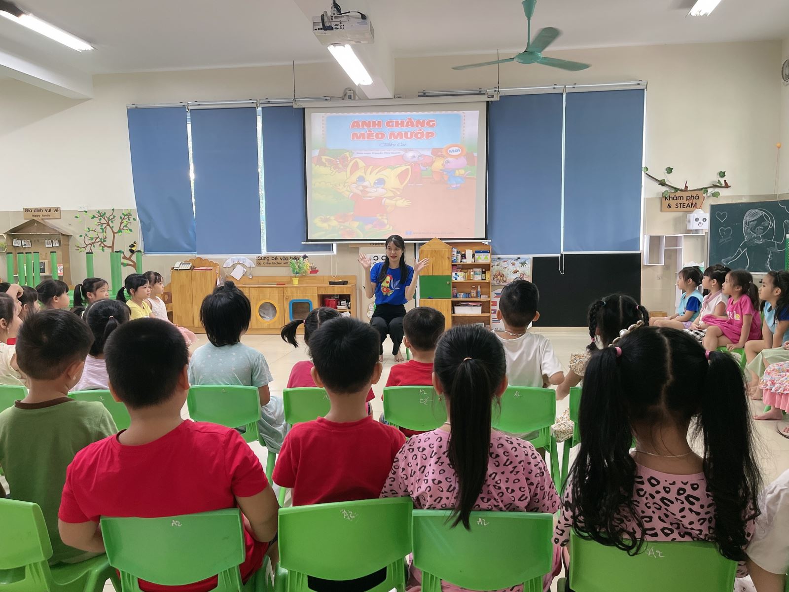 Dưới đây là một số hình ảnh của các bé lớp MGL A2 trong hoạt động Làm quen với tác phẩm văn hoc với đề tài: "Anh chàng mèo mướp":