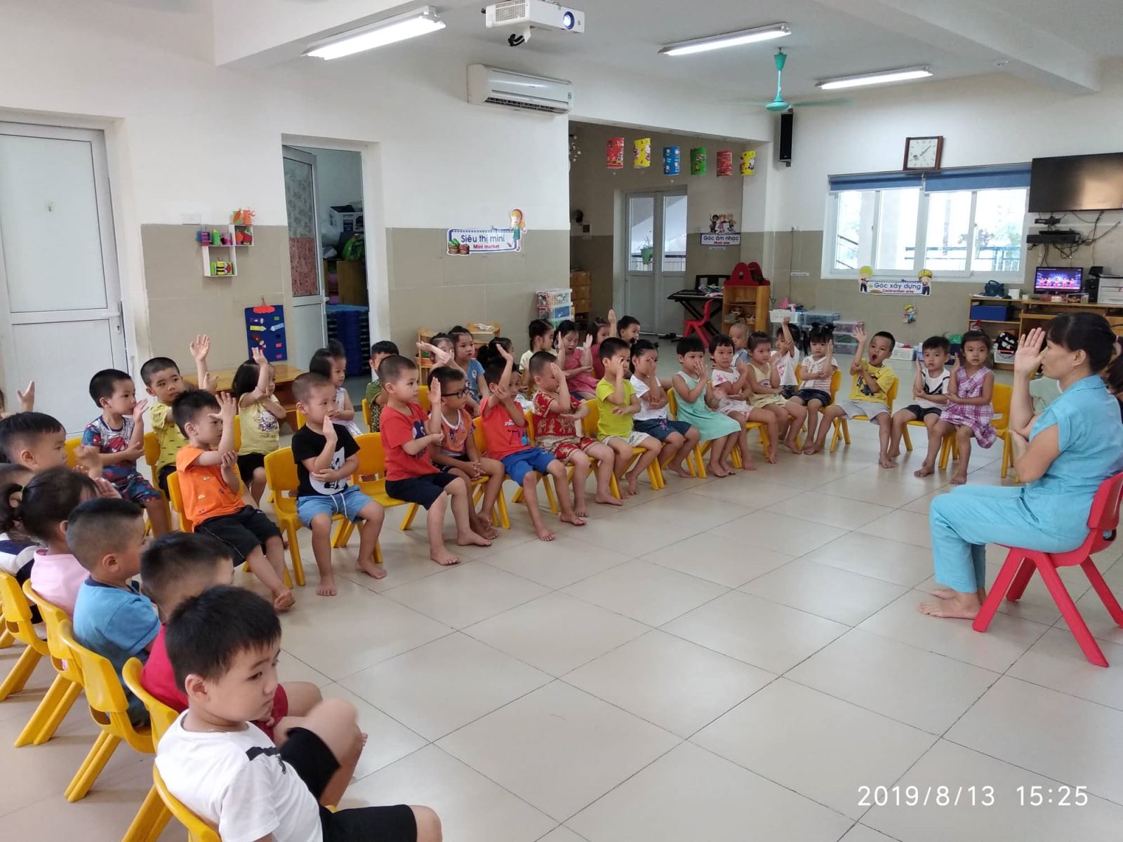 Ngày 27/8/2019, các bé B1 cùng tham gia vào hoạt động trò chuyện về một ngày của bé.