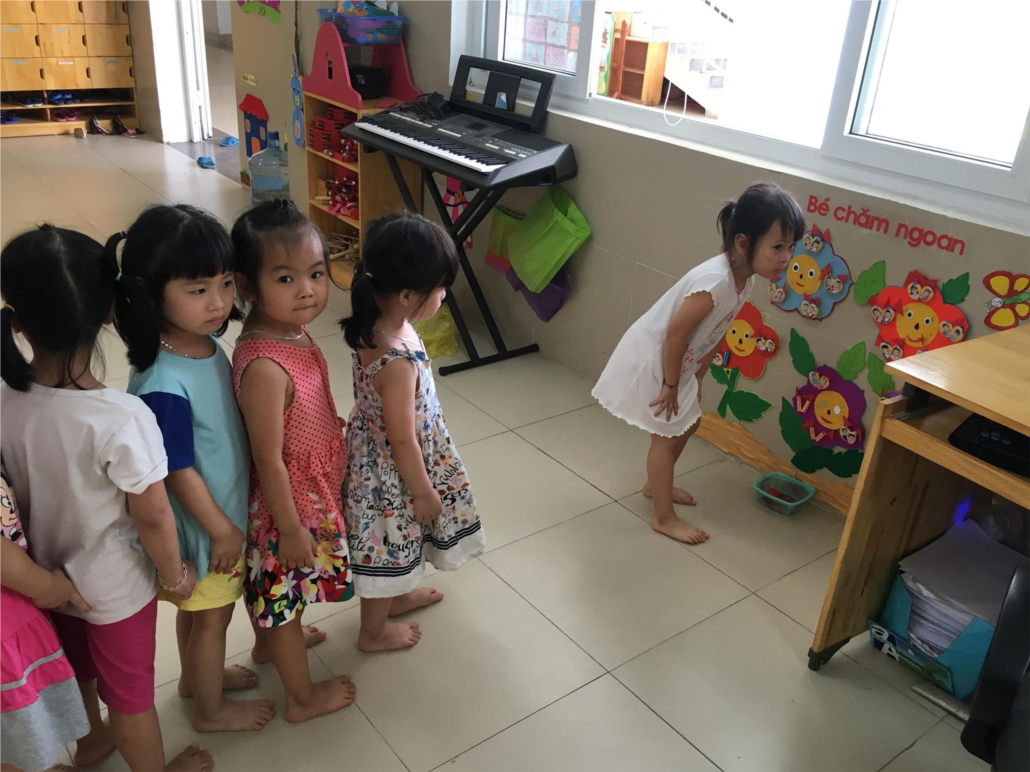 Hai ngoan vào lớp xếp hàng