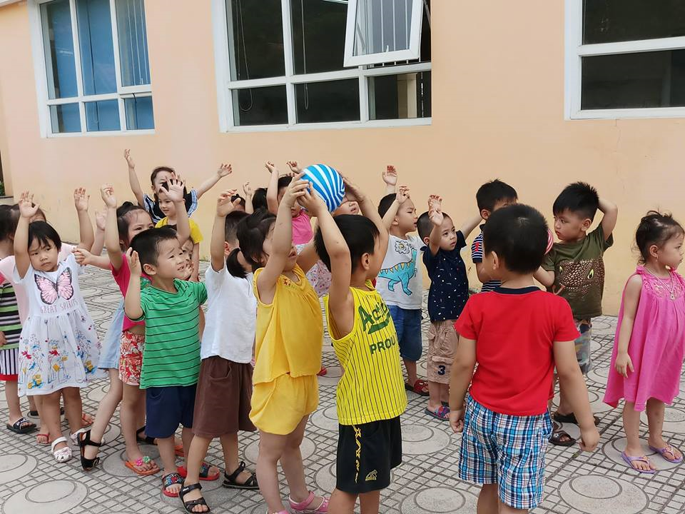 Các bạn chơi trò chơi "chuyền bóng"