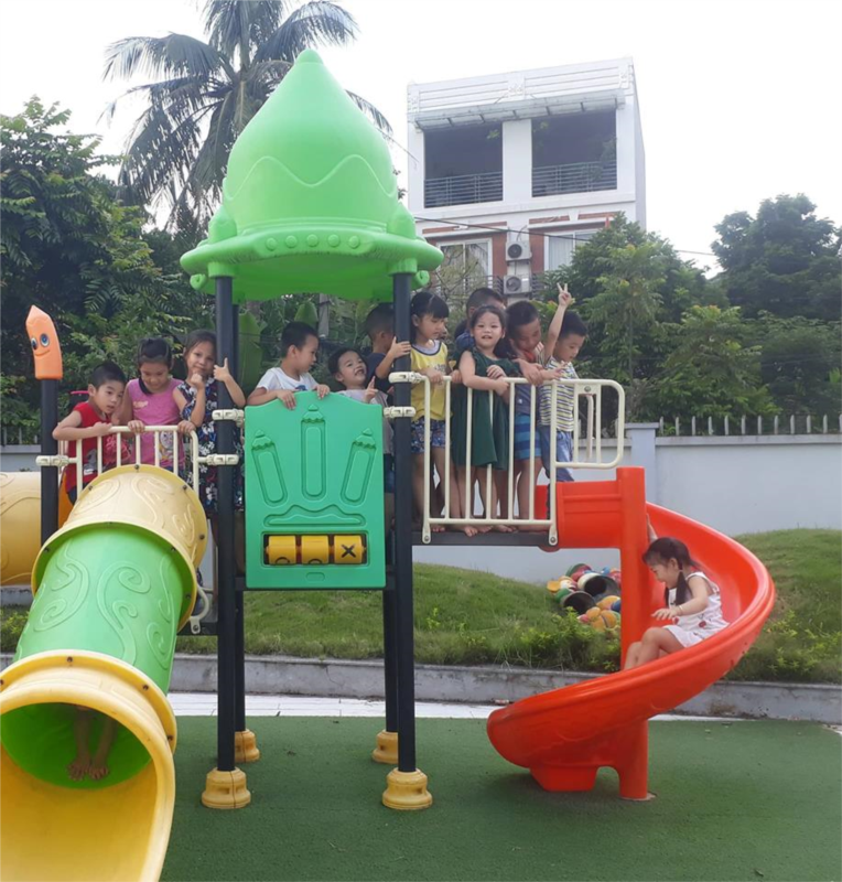 Ngoài ra trẻ còn được chơi tự do với những đồ chơi ngoài trời, giúp trẻ phát triển về mặt thể chất, vận động, giúp bé tiêu hao năng lượng, do đó sẽ ăn ngủ ngon hơn.