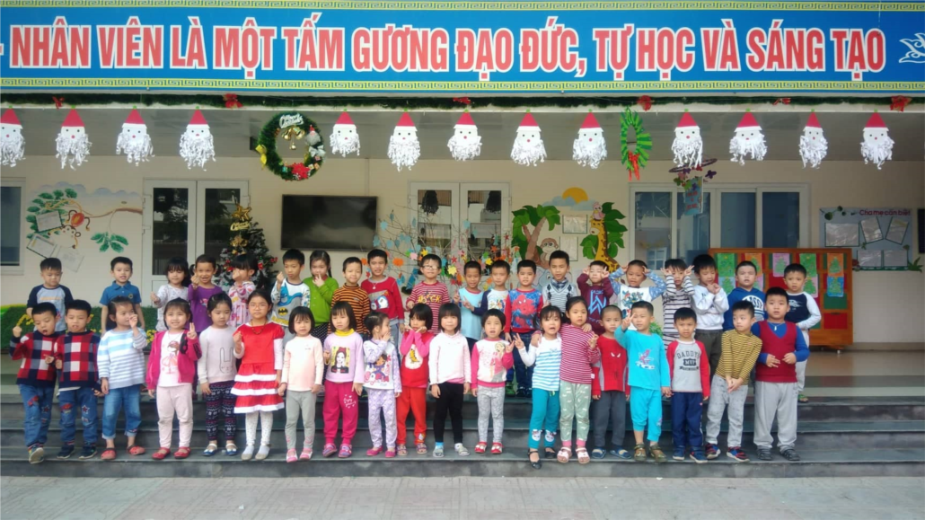 Không khí Noel, chào đón năm mới 2019 đã rộn ràng khắp nơi, hòa chung niềm mong đợi ấy, sắc màu rực rỡ của không khí lễ hội bừng lên trên từng ô cửa kính các lớp học cùng với đó là những khúc nhạc Giáng Sinh rộn ràng, vui tươi. Những hình ảnh ông già Noel trên cỗ xe đầy quà được những con tuần lộc kéo băng qua cánh rừng thông, đồi núi đầy tuyết rơi để đến trao quà cho các bé càng làm cho trí tưởng tượng trẻ thơ thêm phần thú vị, bay bổng rất nhiều. Chúc cho các bé có một mùa Giáng Sinh an lành, ấm áp và hạnh phúc.