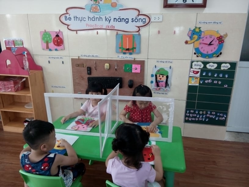 Cá !important;c cô đã sử dụng tấm chắn khi các con ngồi học trên bàn