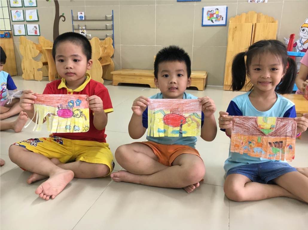 Giờ học kết thúc trong sự hài lòng và yêu thích của trẻ với kết quả 100% trẻ đều cắt được chiếc rèm cửa của riêng mình trong đó khoảng 83% trẻ có kĩ năng cắt theo đường thẳng tốt. Các con được mang sản phẩm về nhà khoe với người thân về thành quả của mình nên cảm thấy rất sung sướng và hào hứng.