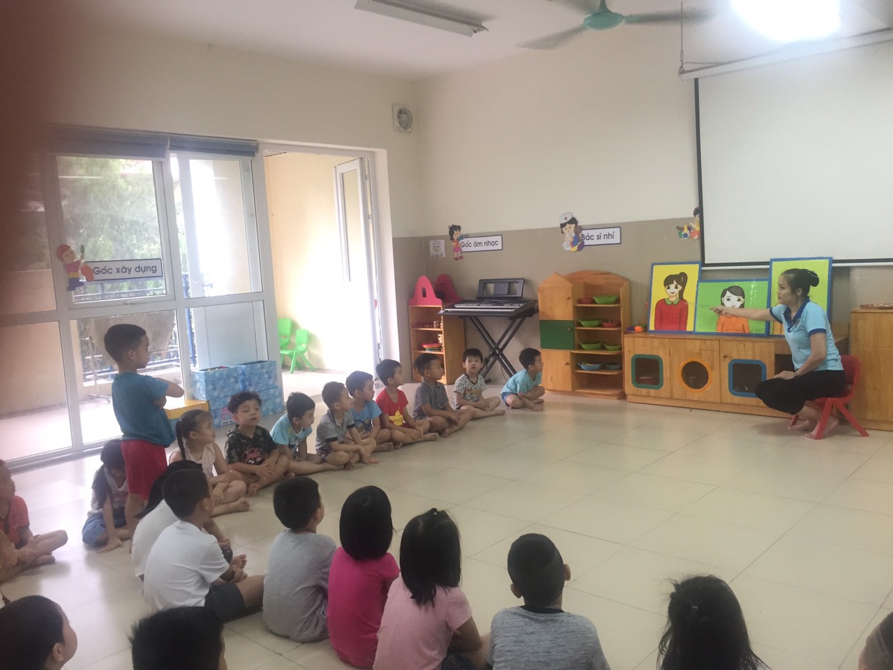 Các bạn nhỏ ngồi ngay ngắn vào bàn.