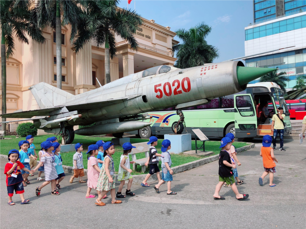 Trong hoạt động này bé được đến tham quan: "Bảo tàng phòng không không quân". Đây là nơi lưu giữ những hình ảnh, tư liệu, hiện vật minh chứng cho quá trình ra đời, xây dựng, chiến đấu, trưởng thành và chiến thắng của bộ đội Phòng không - Không quân Việt Nam. Là một công trình lịch sử, văn hóa, khoa học ở Thủ đô Hà Nội, Bảo tàng Phòng không - Không quân không chỉ góp phần giáo dục truyền thống yêu nước và cách mạng cho các bé, mà còn là địa chỉ văn hóa hấp dẫn, giúp các bé được lĩnh hội nhiều kiến thức mới lạ, thú vị. Không gian trưng bày ngoài trời của Bảo tàng Phòng không - Không quân giới thiệu các bộ sưu tập hiện vật, vũ khí độc đáo của 4 lực lượng Phòng không - Không quân Việt Nam gồm: Máy bay, Pháo Cao xạ, Tên lửa và Ra đa. Tại phần trưng bày này, bé có dịp chiêm ngưỡng 73 hiện vật thể khối lớn gồm các loại vũ khí, khí tài của Quân chủng Phòng không - Không quân gắn liền với nhiều chiến công xuất sắc trong hai cuộc kháng chiến chống thực dân Pháp và đế quốc Mỹ.