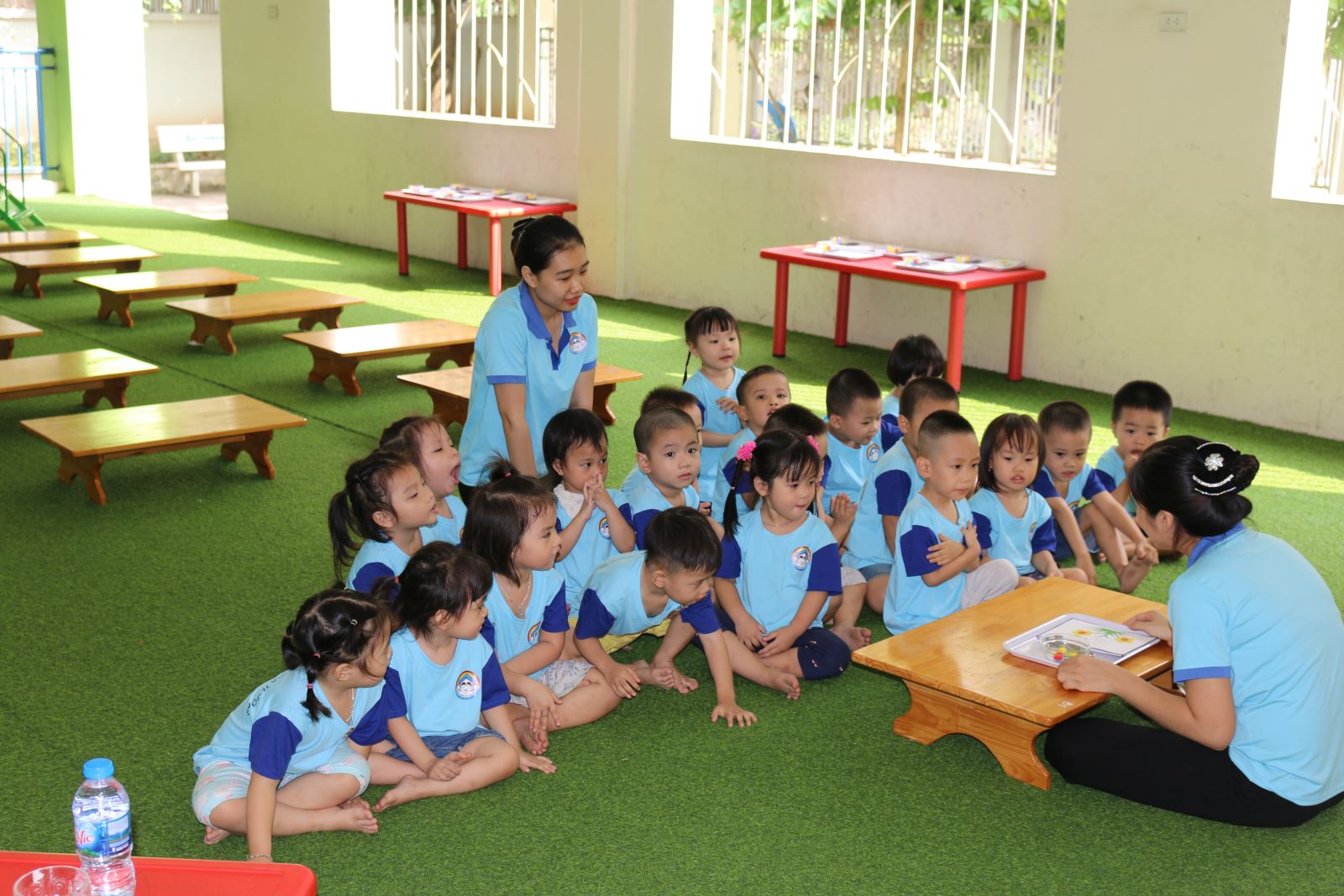 Trẻ chú ý nhìn cô làm mẫu