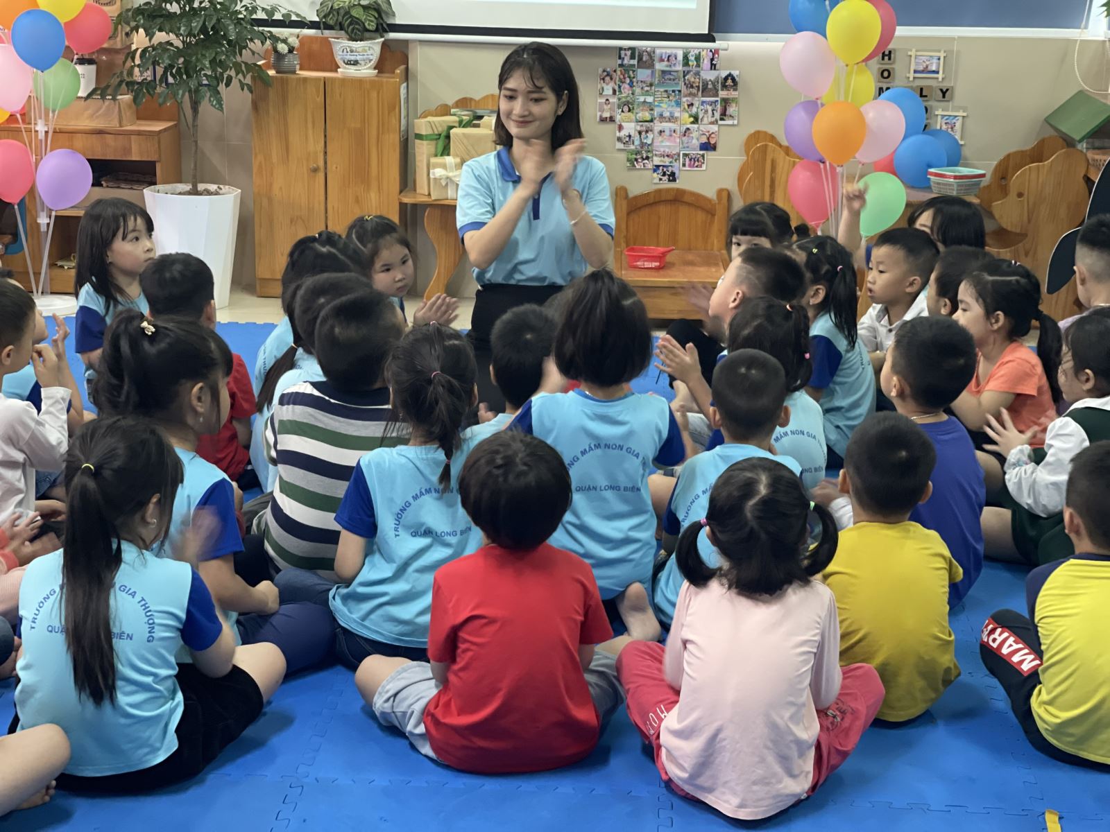 Mở đầu tiết học, để khô !important;ng khí trở lên sôi nổi hơn cô và các bạn nhỏ cùng nhau hát bài hát:" Cháu yêu các cô chú công nhân".