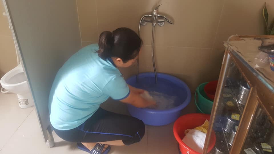 GV đang đánh cọ cốc và tủ