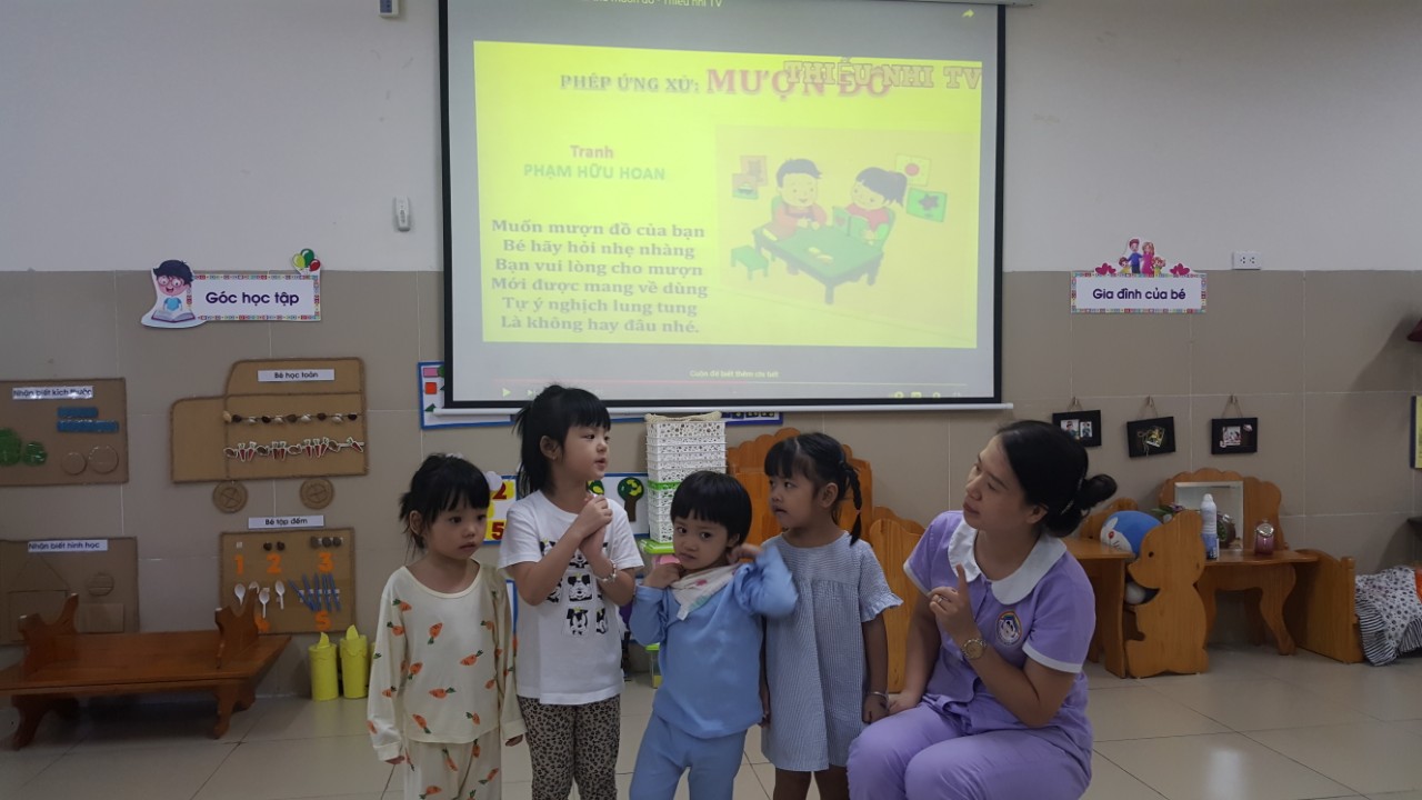 Sau đây là một vài hình ảnh của các bé C4 khi học bài thơ " Mượn đồ"
