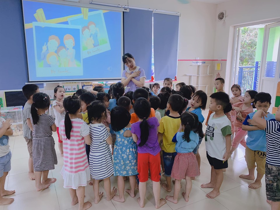 Mở đầu tiết học, trẻ hát bài hát “Niềm vui gia đình”