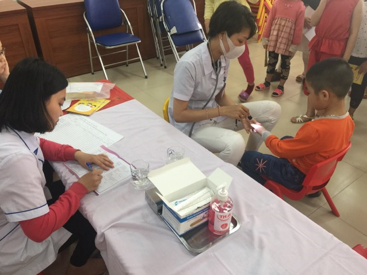 Các bạn nhỏ đang sếp hàng chờ tới lượt khám của mình