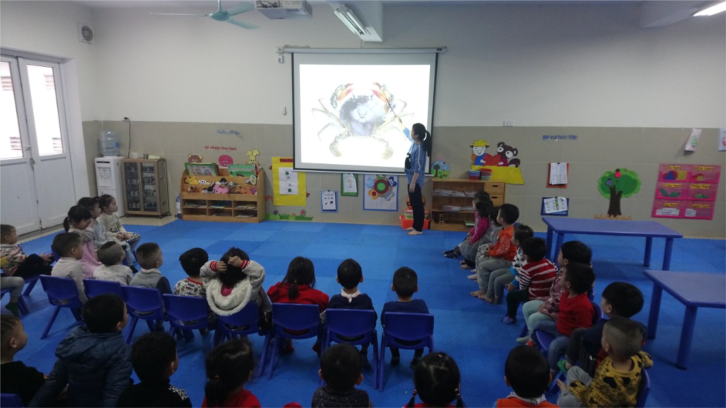 Trẻ mẫu giáo “chơi mà học, học mà chơi”. Trẻ rất hiếu động, tò mò, ham muốn học hỏi, tìm hiểu thế giới xung quanh. Khám phá khoa học là phương tiện để giao tiếp và làm quen với môi trường xung quanh, để giao lưu và bày tỏ nguyện vọng của mình hình thành và nhận thức sự vật, hiện tượng xung quanh mà giáo dục thái độ ứng xử đúng đắn với thiên nhiên, với xã hội cho trẻ. Thông qua môn học này hình thành cho trẻ kỹ năng quan sát, tư duy, phân tích tổng hợp khái quát. Khám phá khoa học với trẻ mầm non là quá trình tham gia các hoạt động thăm dò, tìm hiểu thế giới tự nhiên qua đó giúp trẻ được hoạt động và tự phục vụ bản thân. Những công việc đó có thể sẽ là bài học trải nghiệm tốt cho trẻ về khoa học. Hôm nay các bạn lớp MGB C4 được tìm hiểu về con tôm, con cua , con cá. Chúng đều là những động vật sống dưới nước. Được tìm hiểu về các con vật, bạn nào cũng hào hứng, hứng thú bày tỏ những hiểu biết của mình