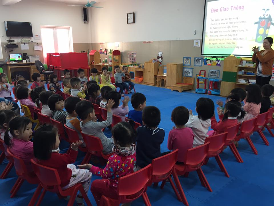 Trước khi vào giờ học cô và trẻ cùng hát bài " Em đi qua ngã tư đường phố"