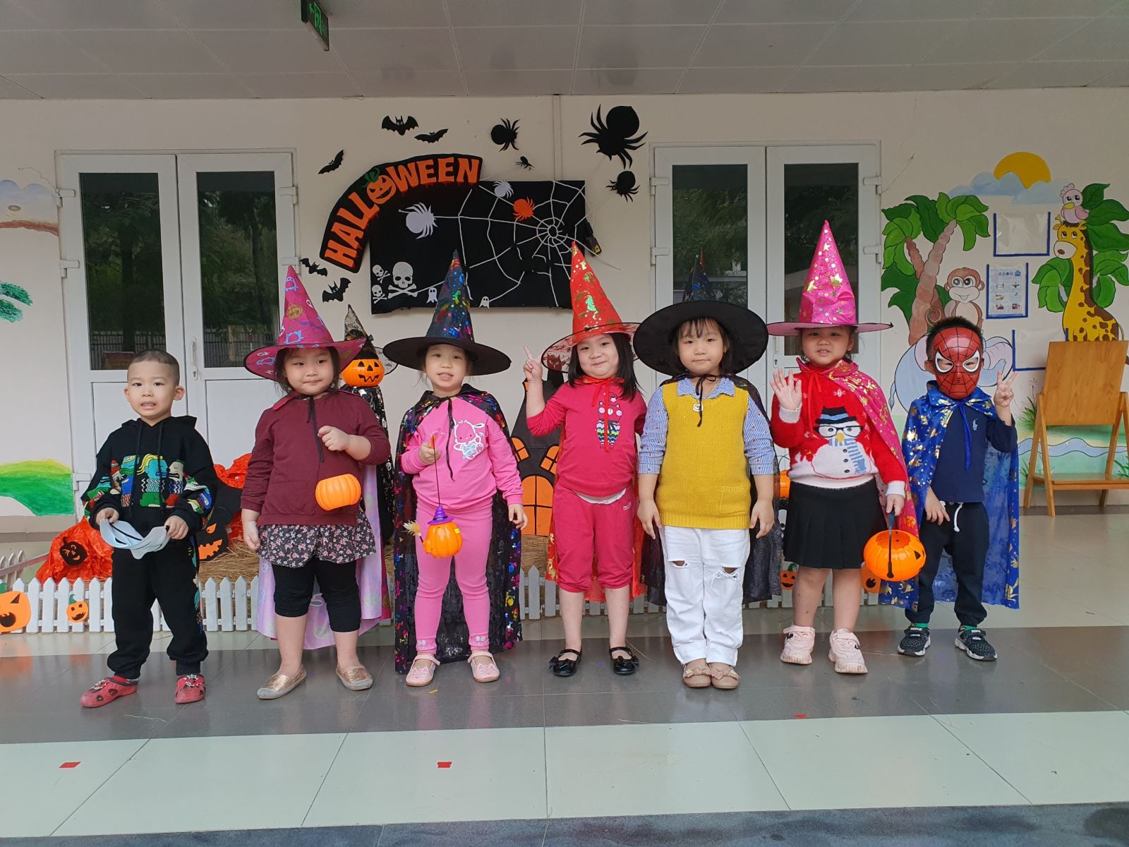 Và không bỏ lỡ các lễ hội nào, trường mầm non Gia Thượng cũng đã tạo 1 background về lễ hội Halloween để cho các con chụp ảnh và biết về lễ hội. Cùng đón xem các hình ảnh của các bạn nhỏ lớp B2 ngày Halloween nhé.