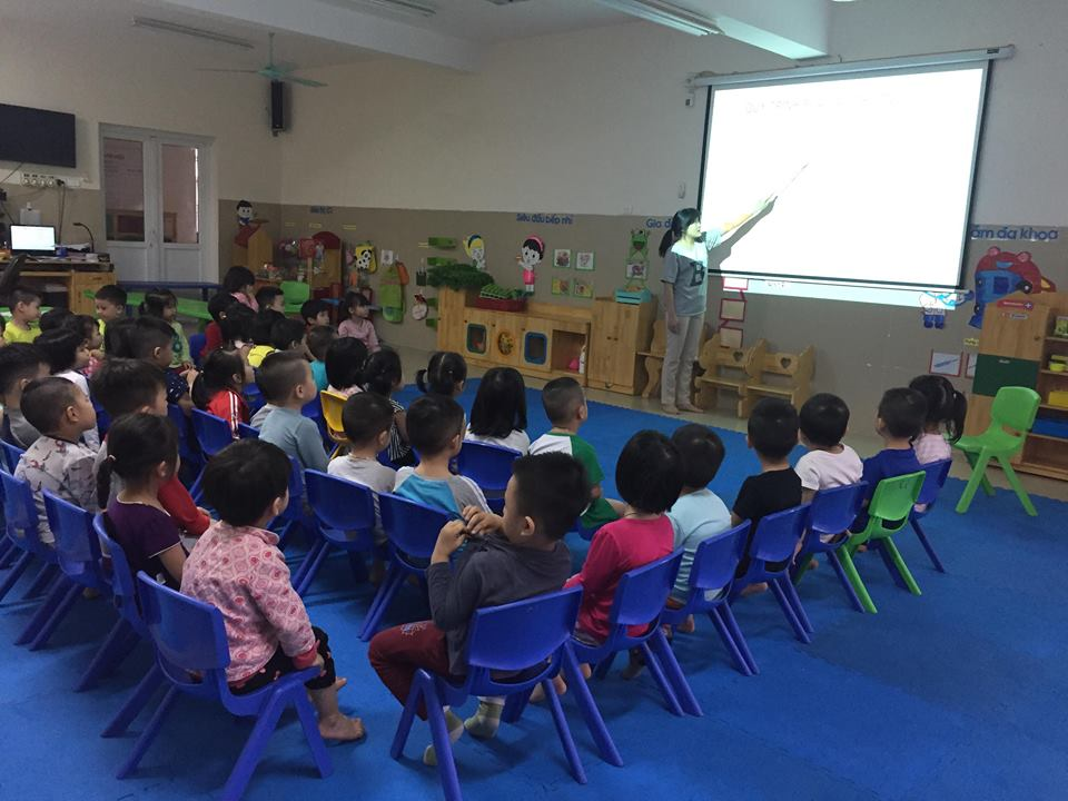 Các bé cùng cô thực hiện các bước rửa tay trên không