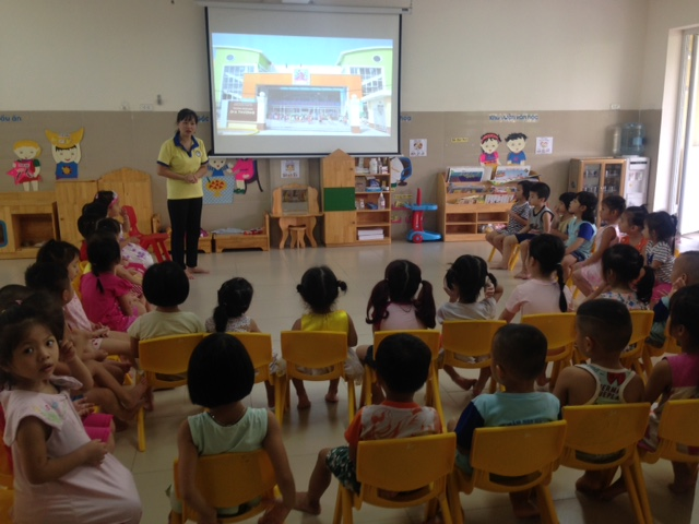 Cô giáo đã cho trẻ xem một số hình ảnh về quang cảnh trường, lớp.