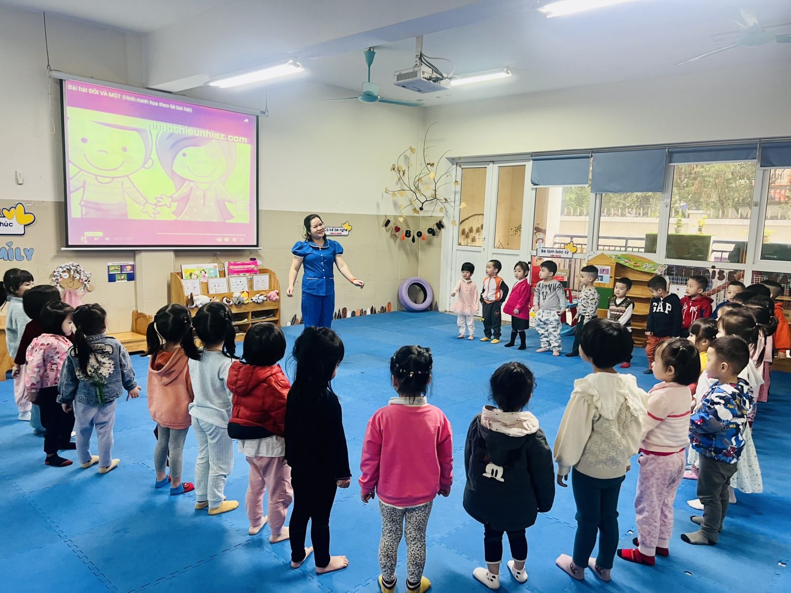 Các bạn lớp MGB C3 rất háo hức tham gia vào hoạt động làm quen với toán. Thông qua các hoạt động học, các trò chơi hay làm bài tập củng cố, trẻ đã nắm vững các khái niệm đơn giản về số lượng, thì sau này trẻ sẽ vững vàng, tự tin khi tiếp nhận những kiến thức của môn toán học.