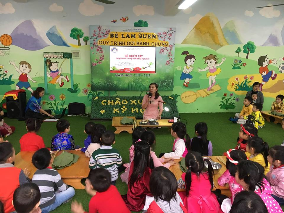 Chính vì thế mà trường mầm non Gia Thượng mong muốn mang đến cho các học sinh của mình không khí của ngày Tết cổ truyền qua “Sự tích bánh chưng” và trải nghiệm gói bánh chưng.