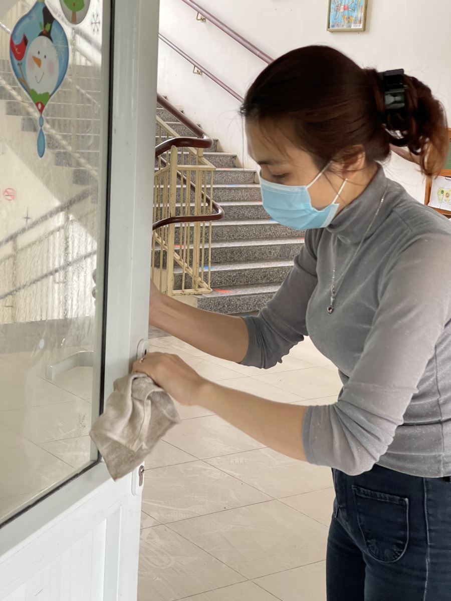 Cá !important;c cánh cửa và tay cầm được cô giáo lau chùi sạch sẽ!